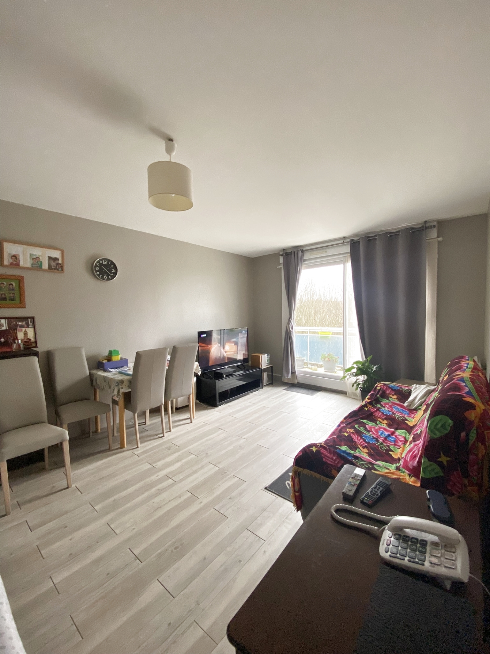 Entrée, cuisine, séjour, 1 chambre, salle de bains, wc.