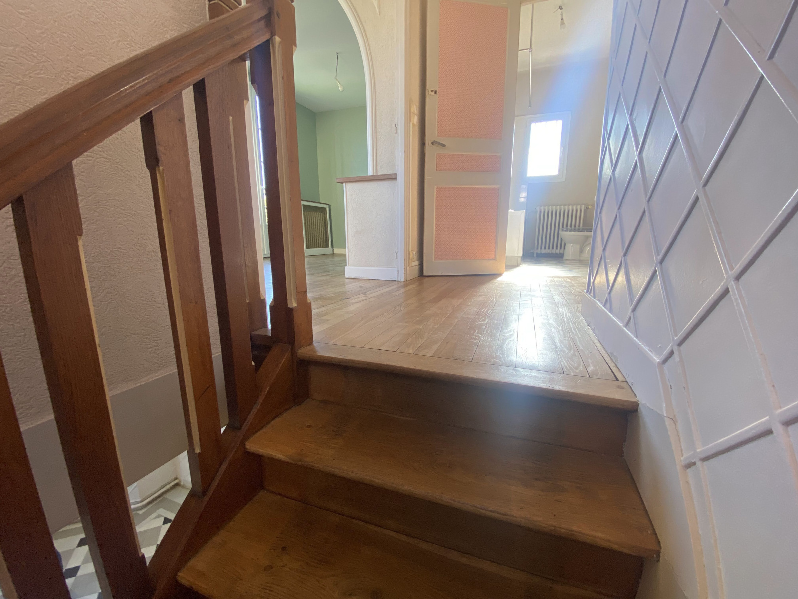A l'étage : Palier, cuisine meublée, séjour-salon, chambre, salle de bains avec wc, loggia.