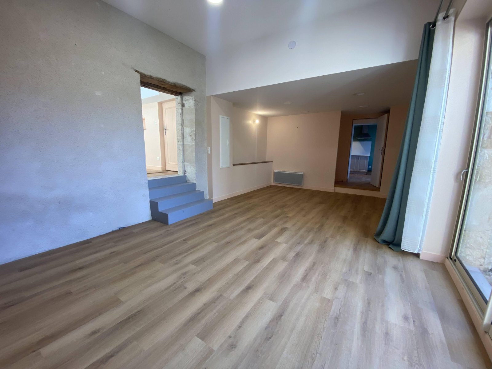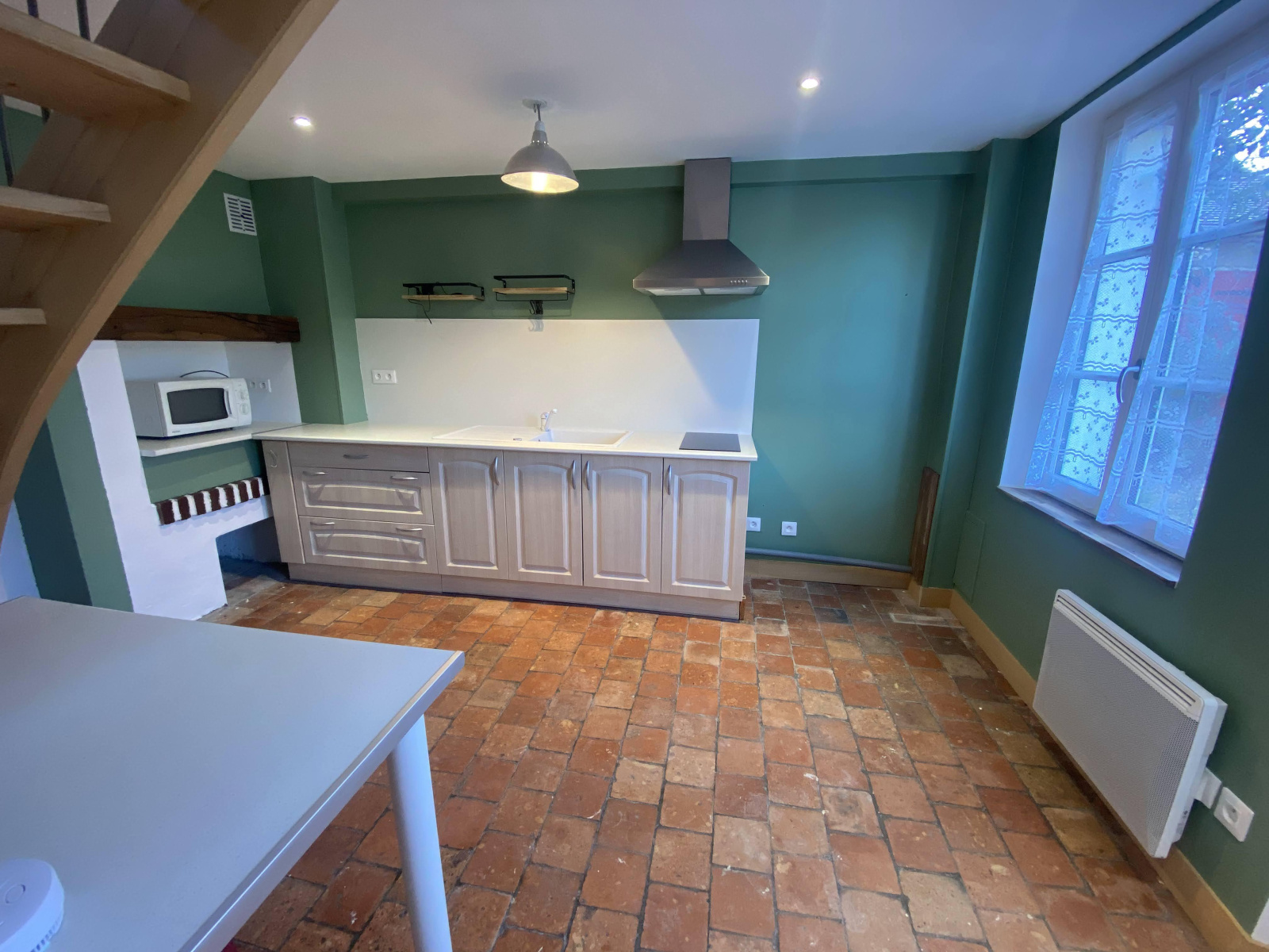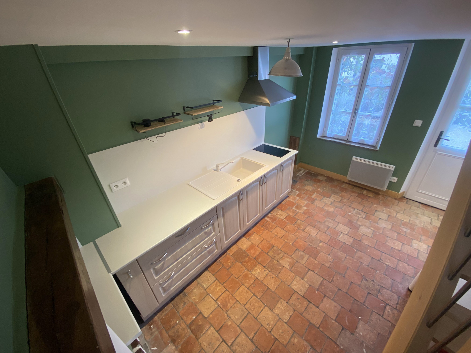 Charmante maison ancienne entièrement rénovée, offrant deux niveaux de vie. Elle se compose au rez-de-chaussée d’une entrée donnant sur une cuisine aménagée, d’un dégagement, d’un WC avec lave-mains, d’un séjour-salon lumineux ainsi que d’une pièce pouvant servir de chambre ou de bureau, disposant d’une cave en dessous et d’un accès direct à la cour.