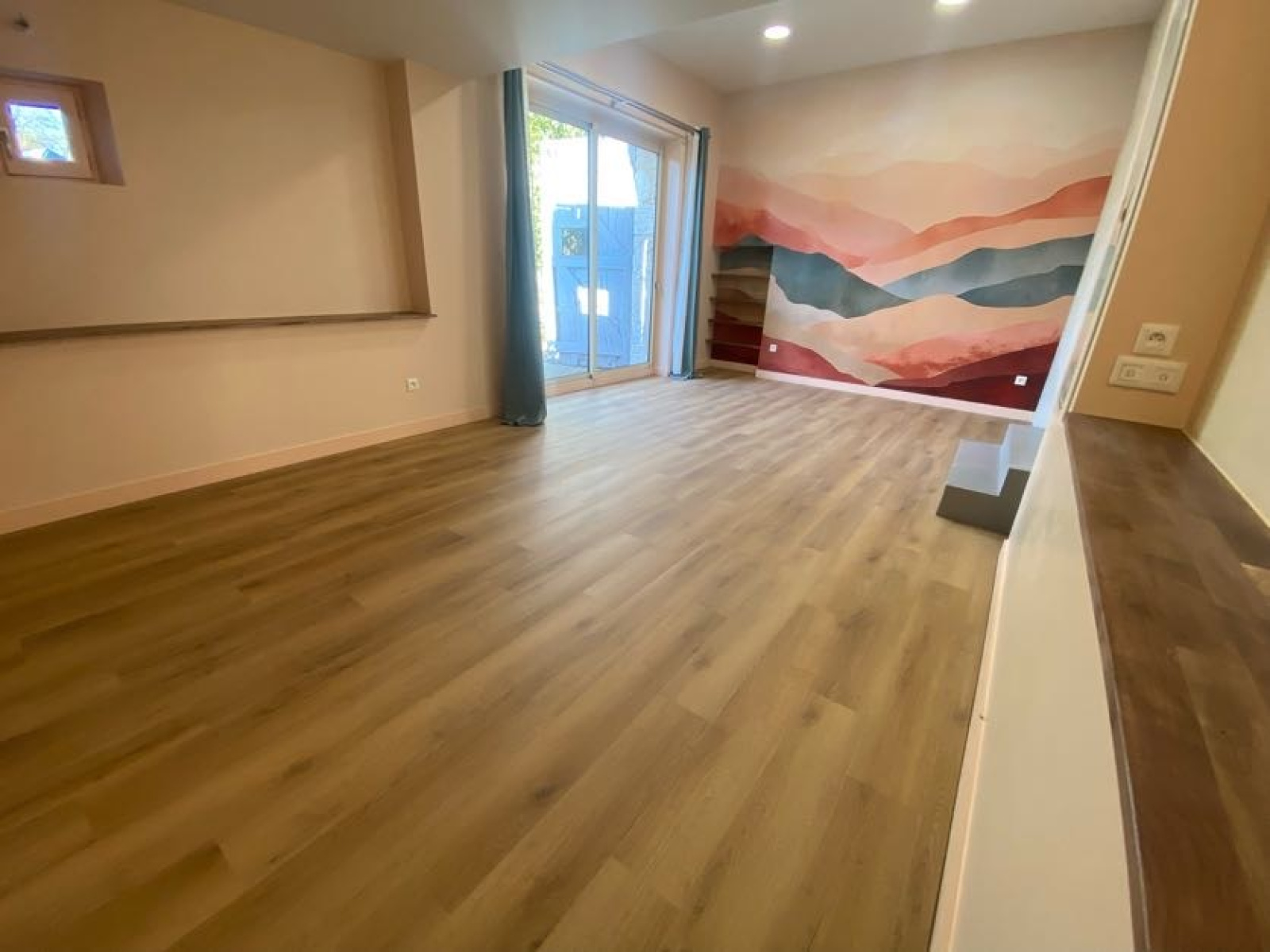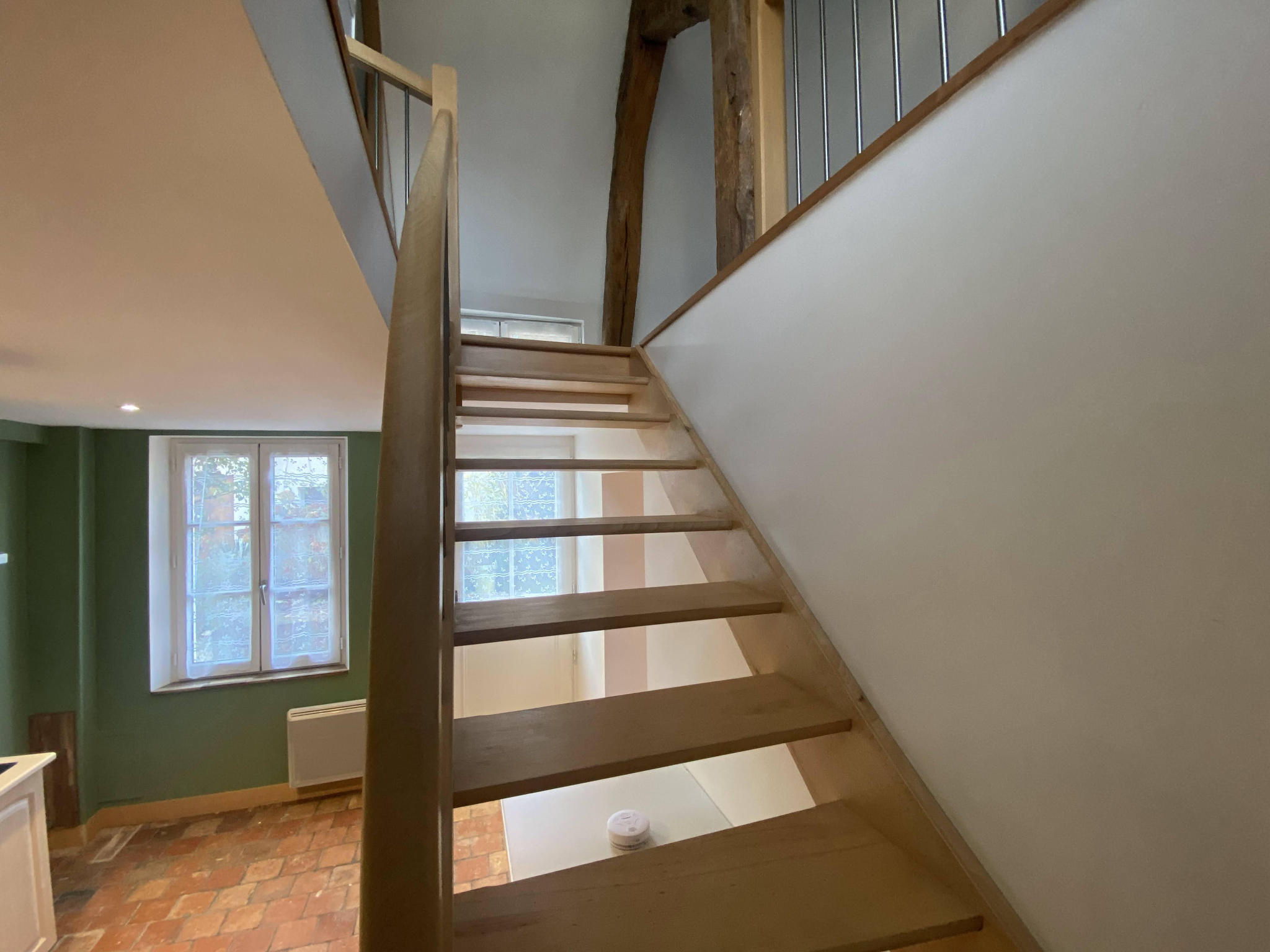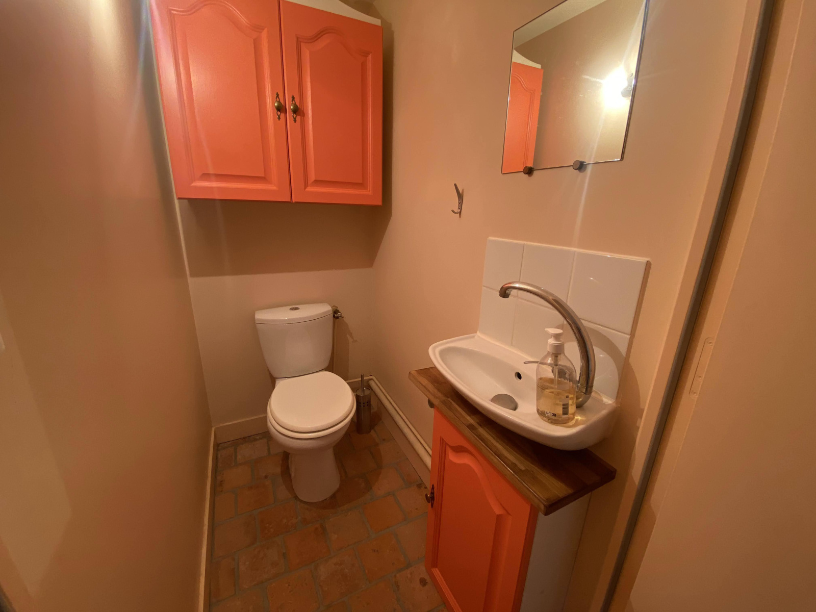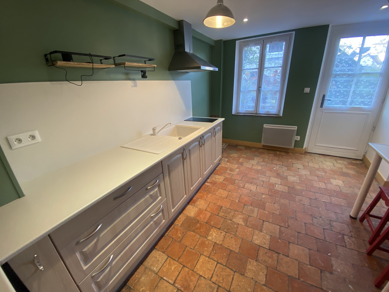 Charmante maison ancienne entièrement rénovée, offrant deux niveaux de vie. Elle se compose au rez-de-chaussée d’une entrée donnant sur une cuisine aménagée, d’un dégagement, d’un WC avec lave-mains, d’un séjour-salon lumineux ainsi que d’une pièce pouvant servir de chambre ou de bureau, disposant d’une cave en dessous et d’un accès direct à la cour.