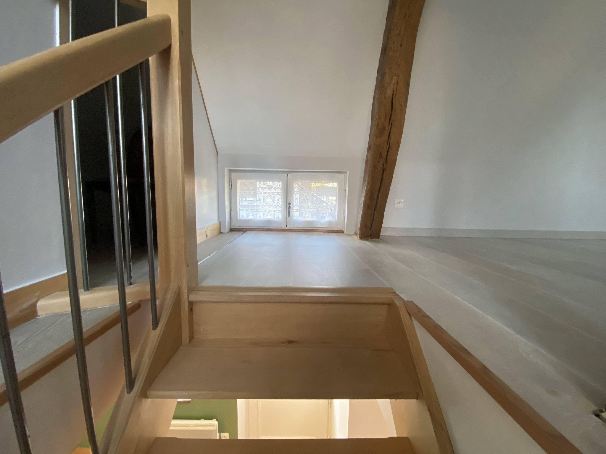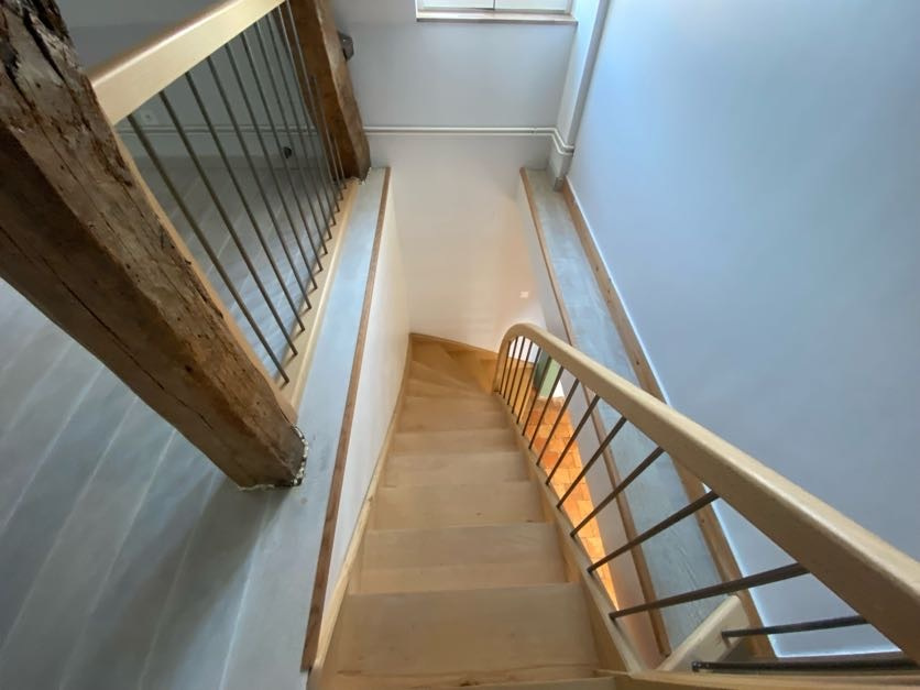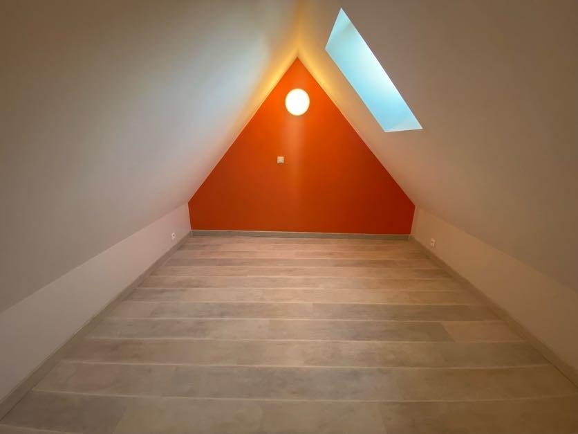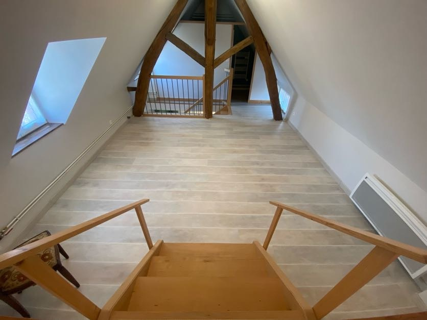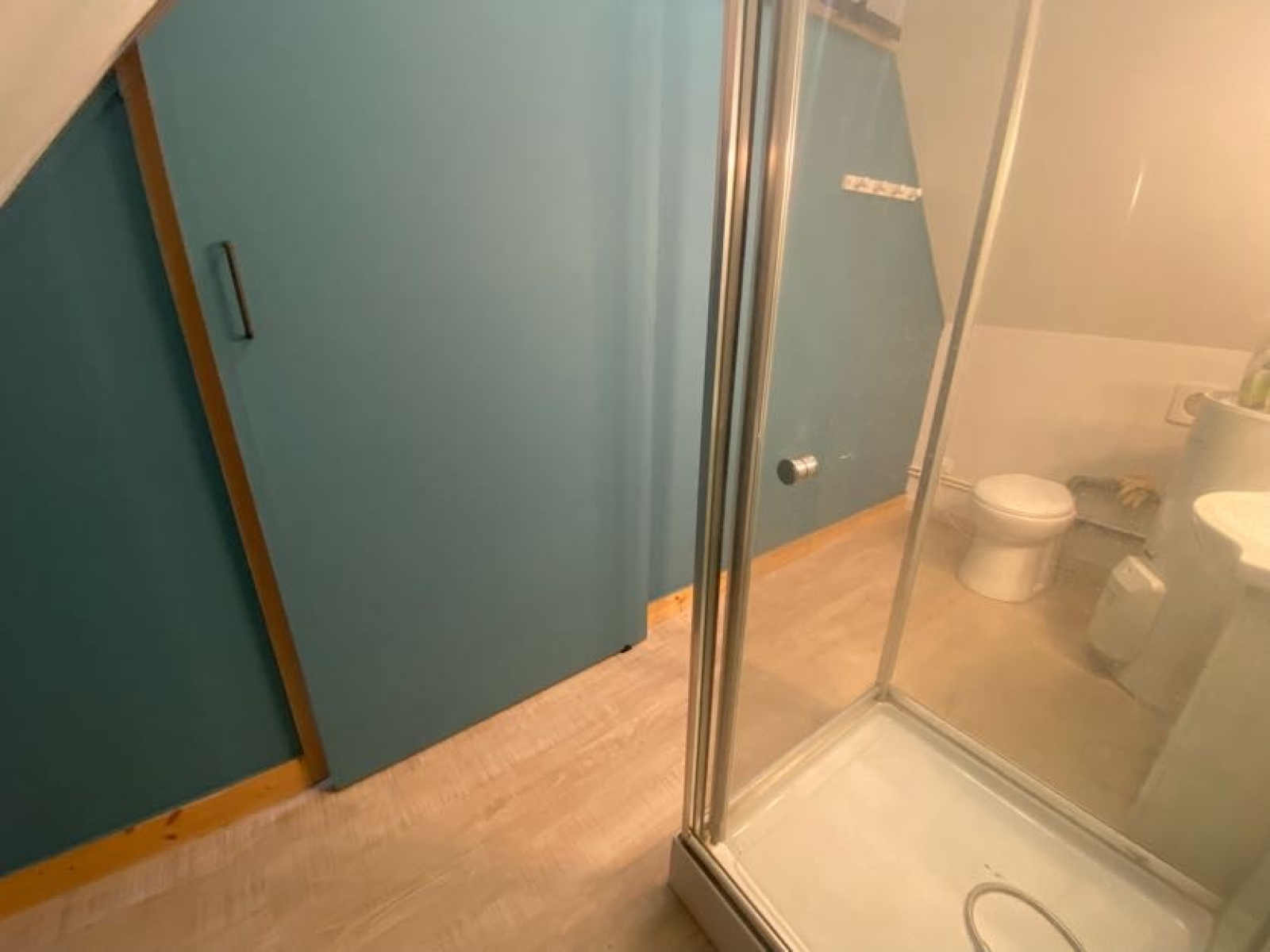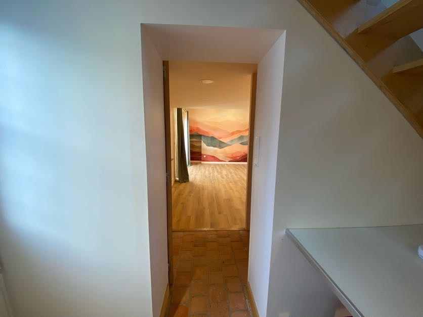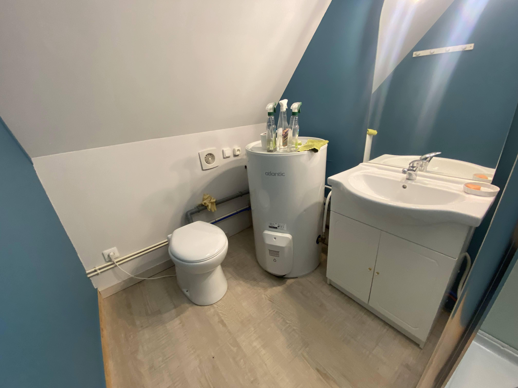 À l’étage, une grande mezzanine offre de multiples possibilités d’aménagement, accompagnée d’une salle d’eau équipée avec WC (sanibroyeur).