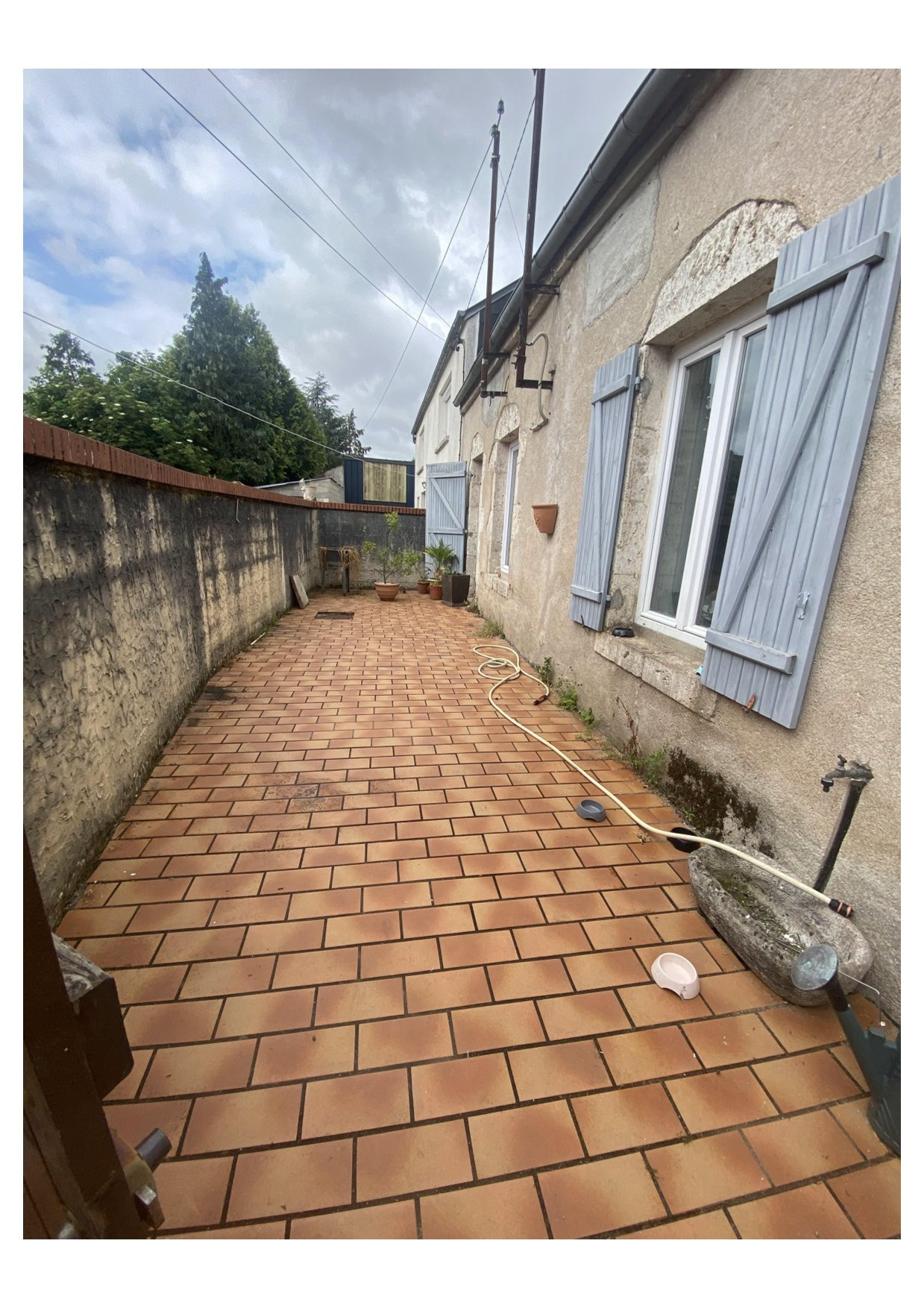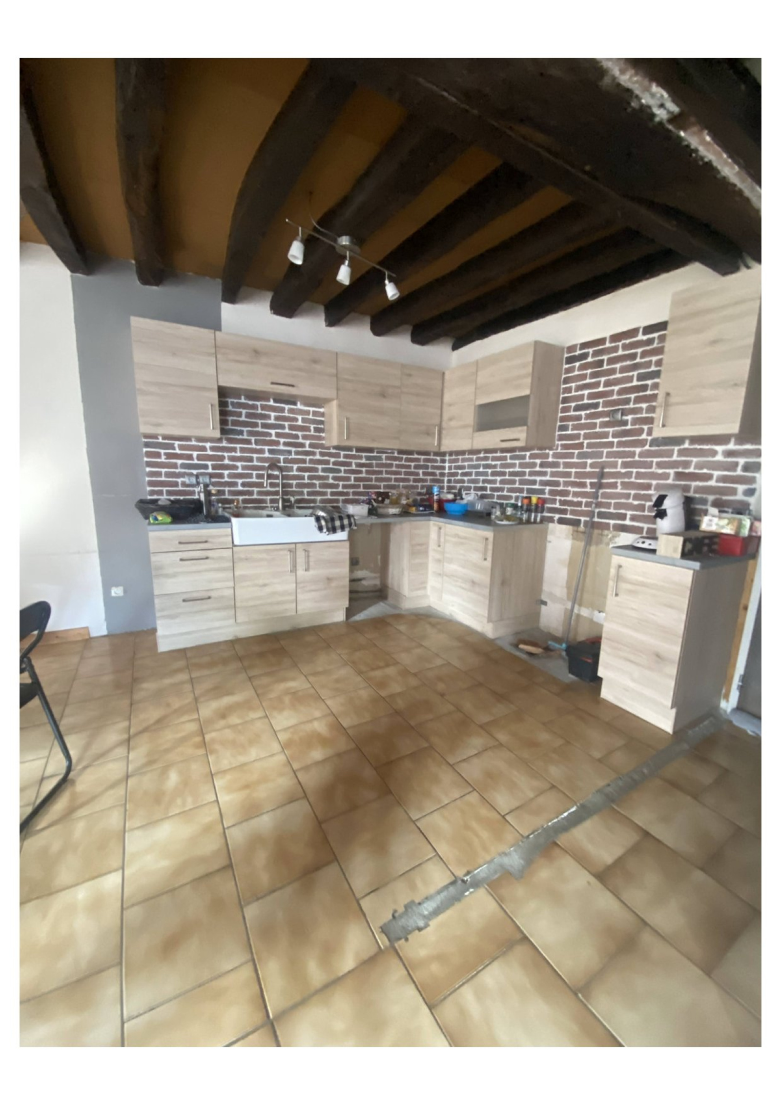 Maison ancienne de type F4 sur deux niveaux comprenant : au rez de chaussée : séjour-salon avec coin cuisine meublé, cheminée avec insert, dégagement, chambre, salle d'eau avec wc.