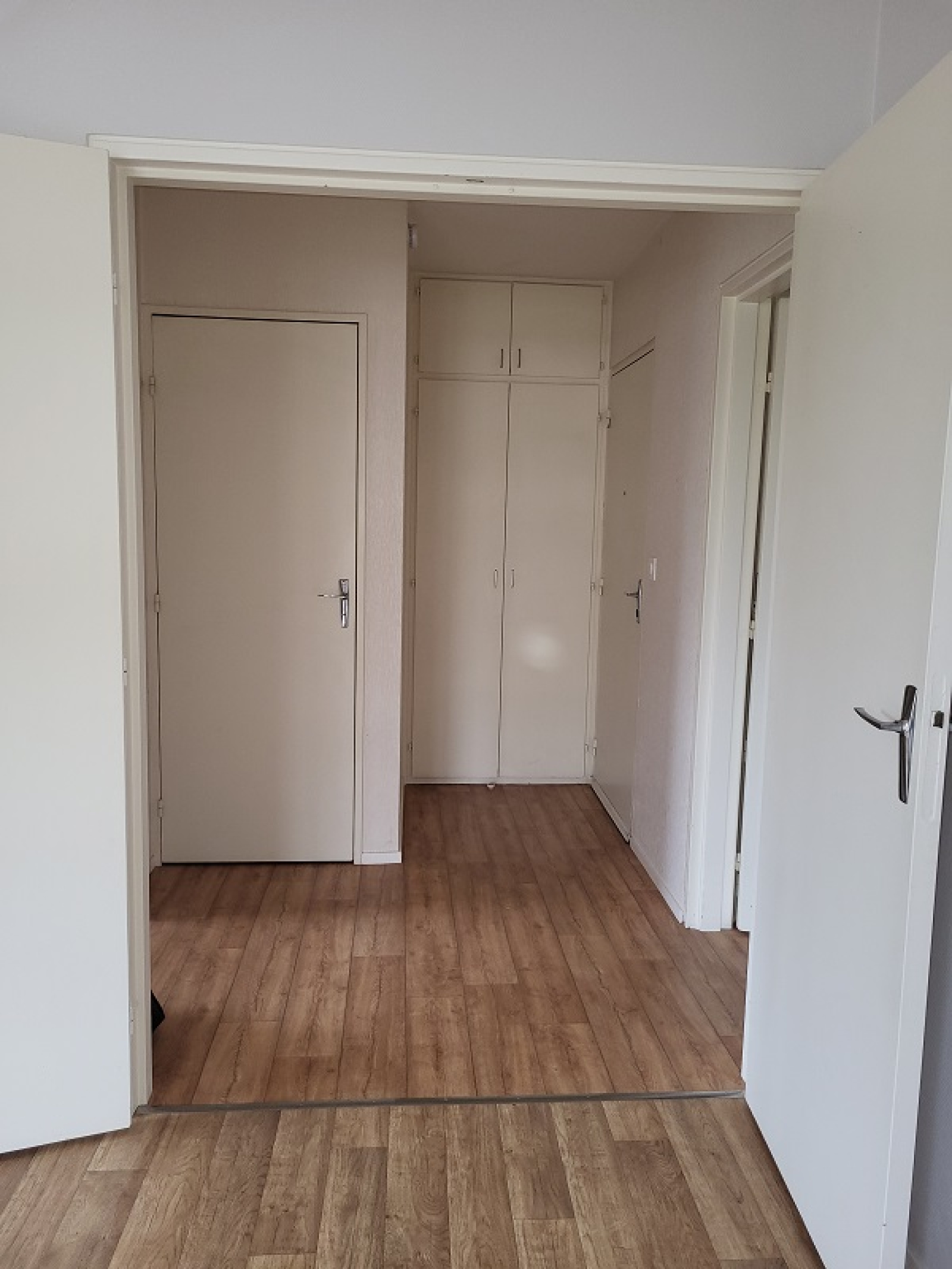 Appartement de 55,60m² environ comprenant : Entrée avec placard, séjour, cuisine, dégagement avec placard, wc, salle de bains et chambre.