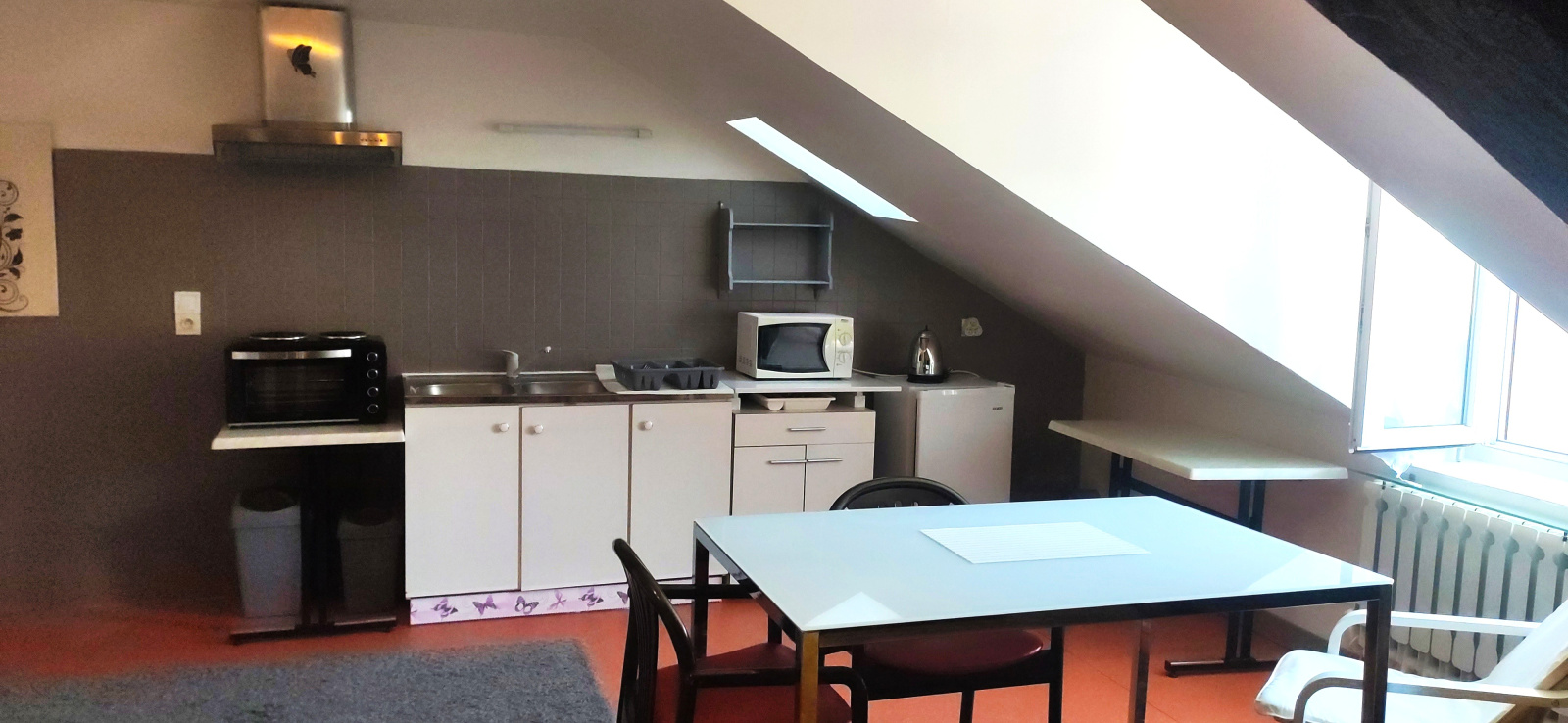 Studio meublé situé au 1er étage en plein centre bourg de Saint Laurent Nouan, comprenant une entrée sur pièce de vie avec coin cuisine aménagée et équipée, une salle de bains et un wc séparé.