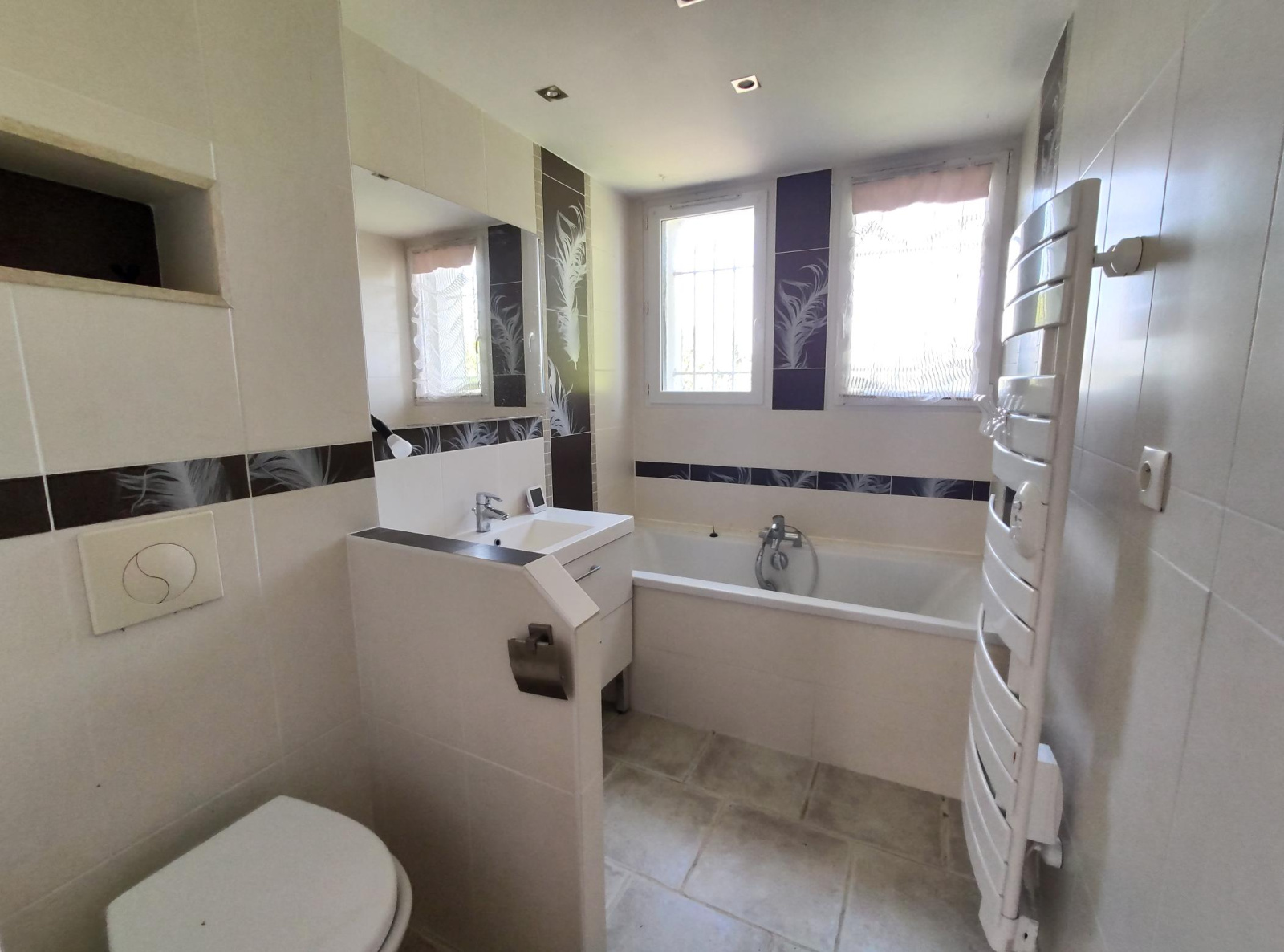 Une maison des années 60 sur un terrain arboré de 1 265m², une surface habitable d'environ 90m², composée :
