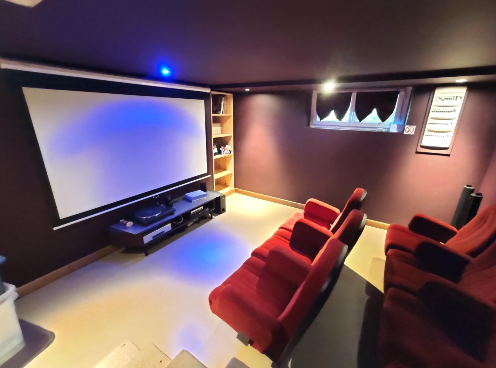 - Au rez de chaussée : sous-sol complet avec chaufferie, garage et un espace salle de cinéma.