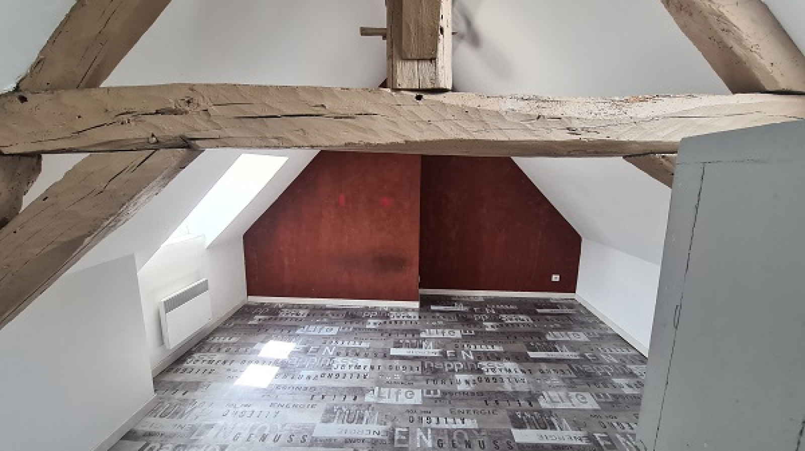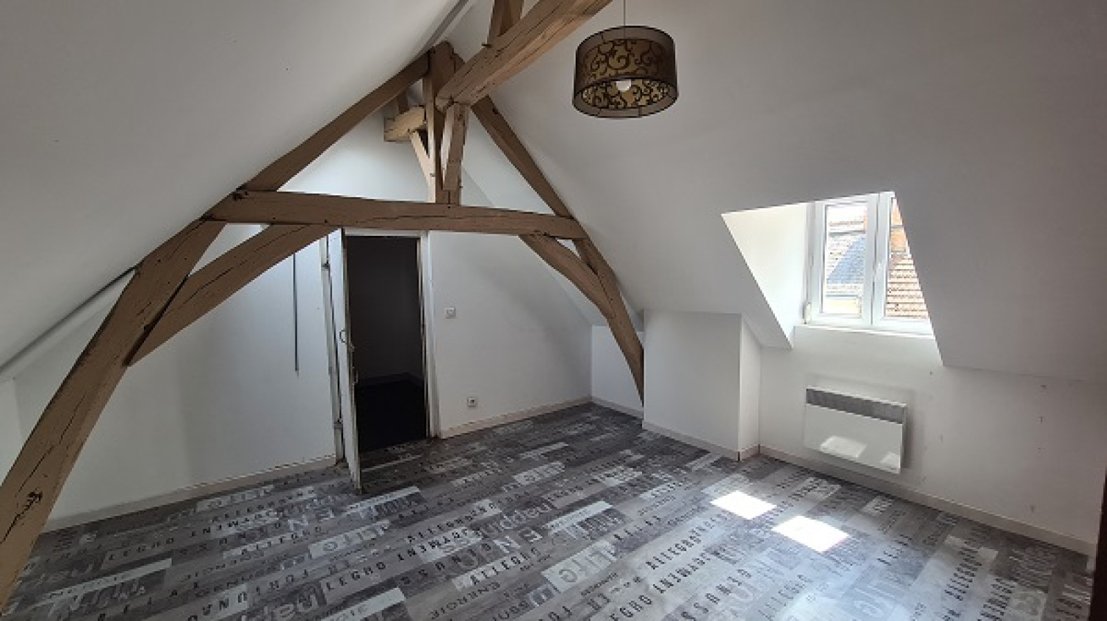 Proche commerces, gare et écoles, appartement F4 situé dans une petite copropriété, vendu loué, comprenant : entrée, séjour lumineux avec charpente apparente, cuisine ouverte aménagée et équipée, 3 chambres, salle d'eau avec wc. Charges de copropriété : uniquement la quote-part d'assurance de l'immeuble. Rentabilité annuelle : 6240 €.
