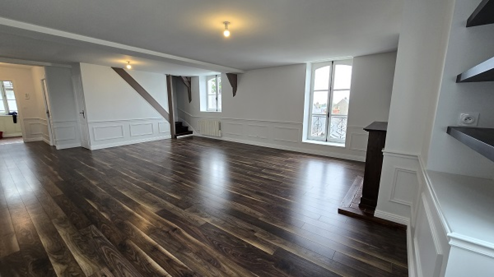 Dans une petite copropriété, magnifique appartement rénové de type F5 en duplex, de 121.76 m² habitables (loi carrez) et 128.44 m² au sol, aux 2ème et 3ème étage d'une ancienne maison bourgeoise, comprenant : une entrée, une buanderie, une cuisine aménagée, un vaste séjour-salon, trois chambres, un wc, une salle de bains avec wc et une salle d'eau avec wc.