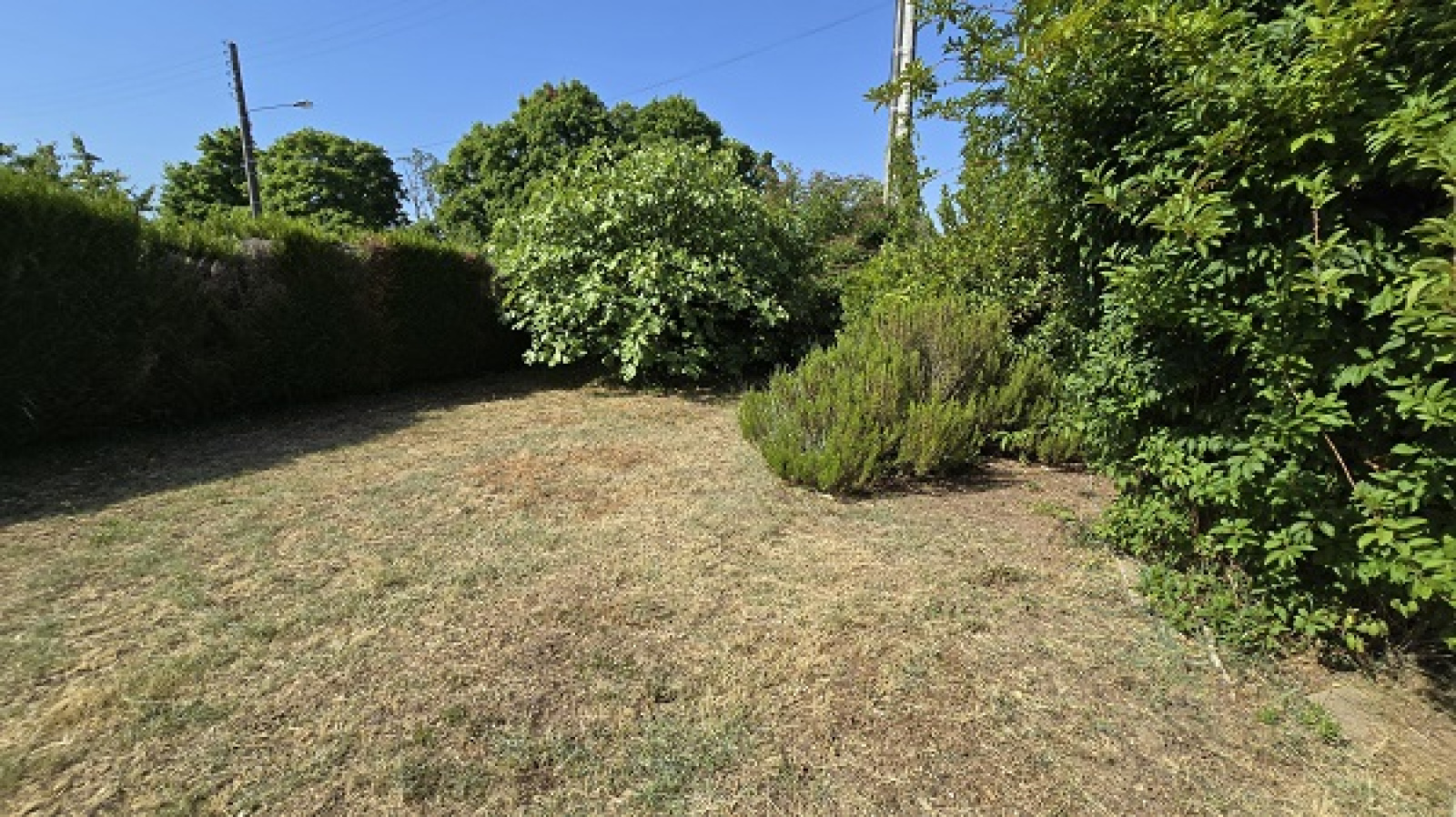 Jardin clos et arboré. Parking en béton désactivé permettant le stationnement de deux voitures.
