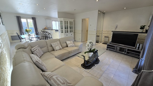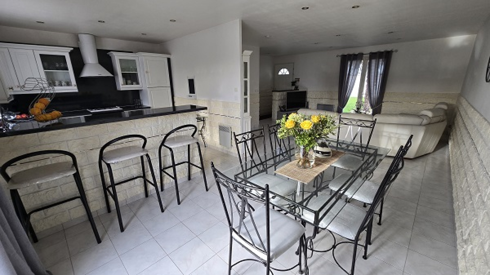 Charmant pavillon de plain-pied offrant une belle pièce de vie lumineuse avec cuisine ouverte, aménagée et équipée.