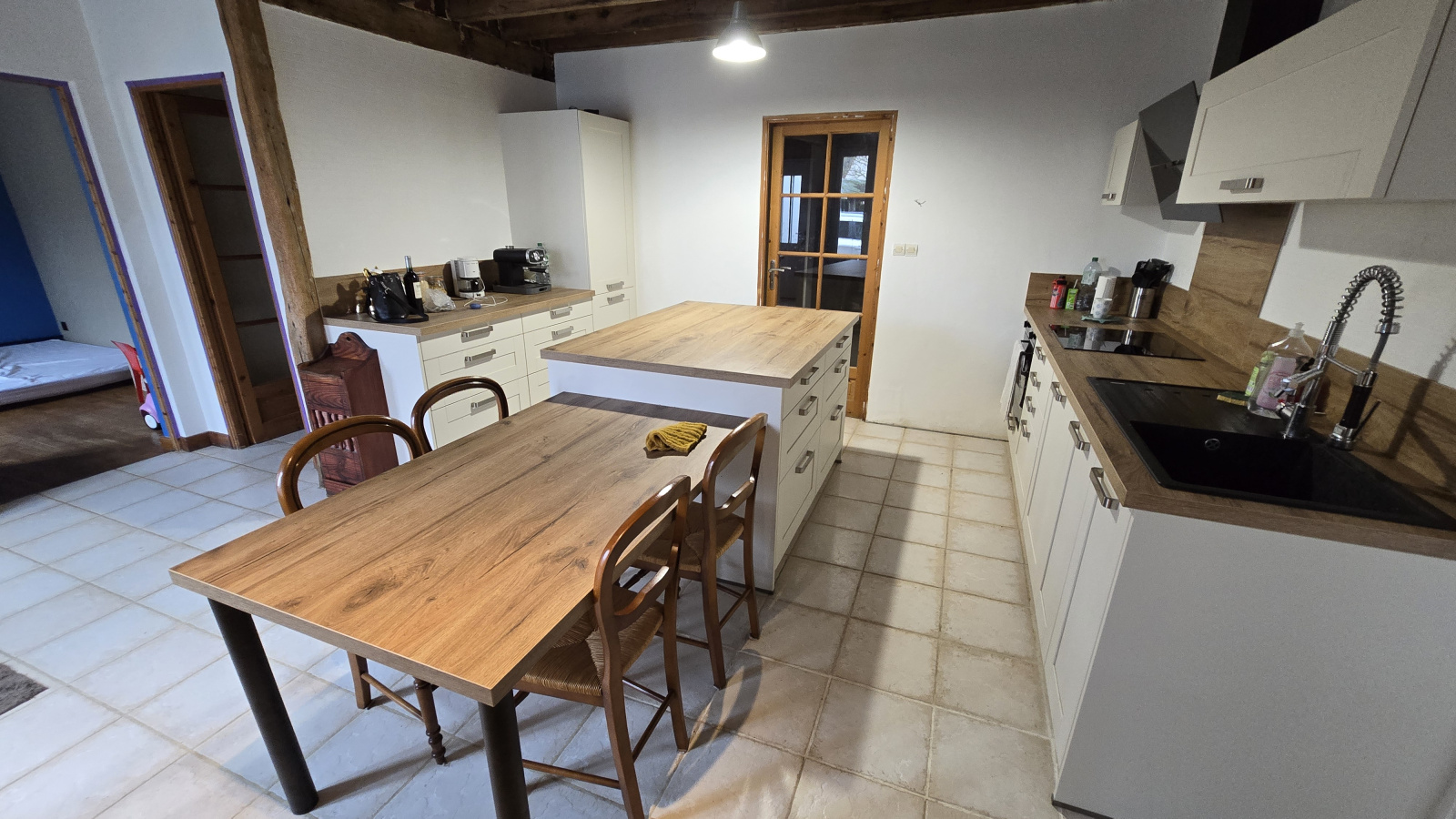 Au rez-de-chaussée elle se compose d'une belle cuisine aménagée et équipée récente, un agréable séjour-salon chaleureux avec cheminée-insert, deux chambres, un wc, une salle d'eau et un cellier-buanderie.