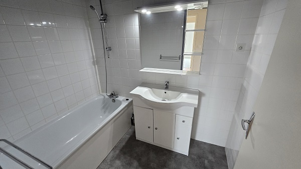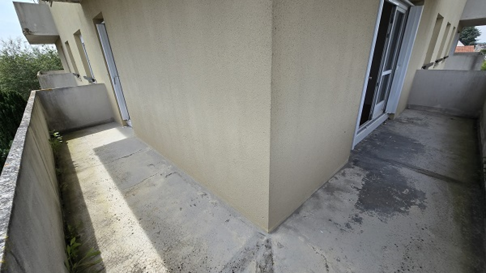 entrée avec placard, cuisine, salle de séjour donnant sur un grand balcon, chambre, wc, salle de bains.