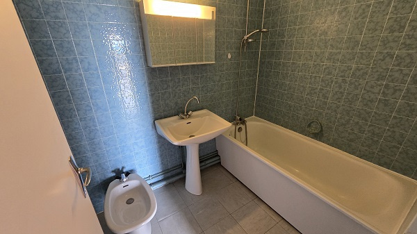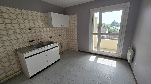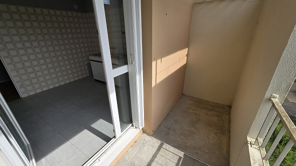 Appartement F2 au dernier étage d'une petite copropriété, entrée, cuisine donnant sur une loggia, séjour-salon, grand balcon, chambre, wc, salle de bains.