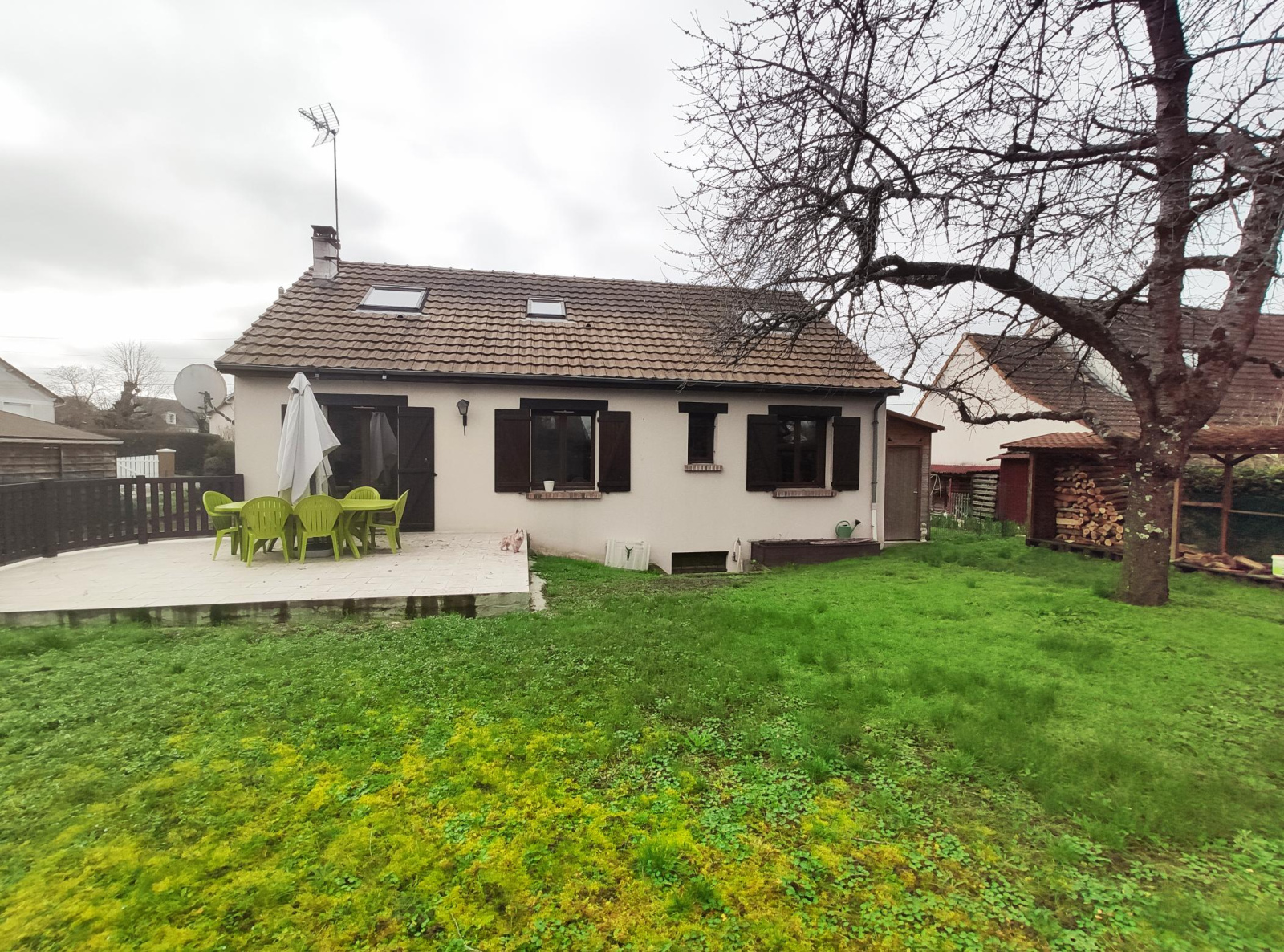 - Autres : une terrasse carrelée, un abri de jardin et un bûcher